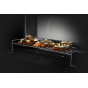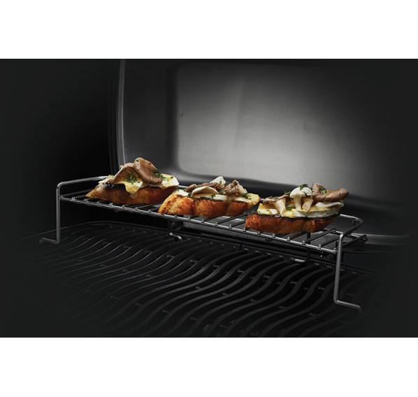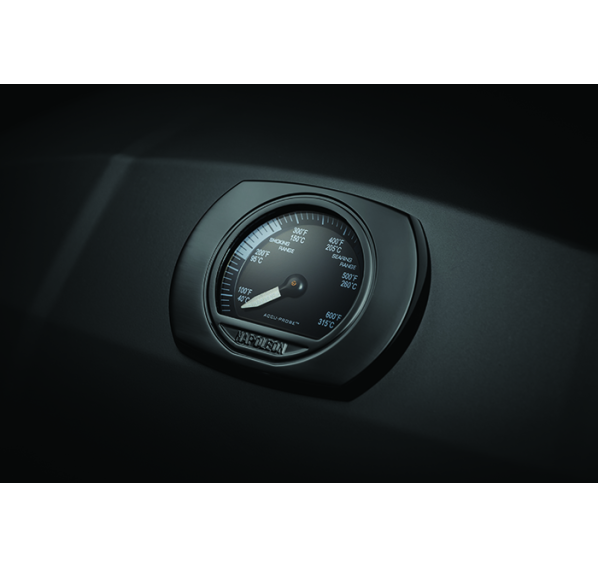Складная тележка типа «ножницы» обеспечивают мобильность и компактное хранение в вертикальном положении, просторные полки с держателем для полотенец и крюками для кухонных принадлежностей, высокая литая алюминиевая крышка, датчиком температуры ACCU-PROBE™