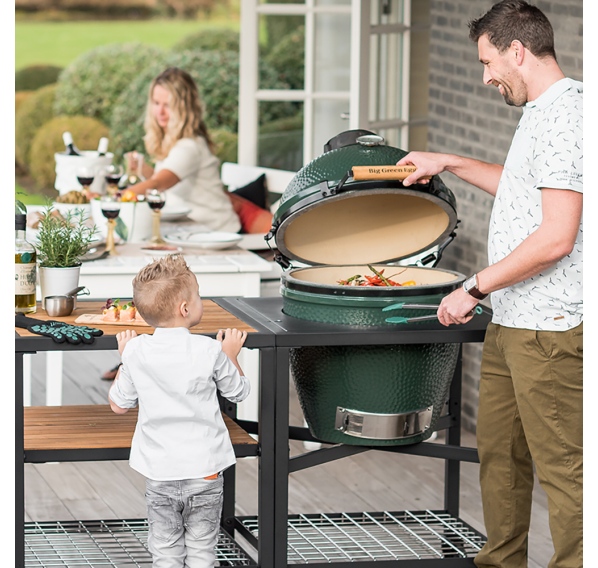Big Green Egg Large является самым популярным размером для приготовления полноценного обеда в кругу семьи и друзей или на профессиональном уровне для гостей. Рабочая поверхность решётки имеет большую площадь, благодаря чему можно с лёгкостью готовить одновременно разнообразные продукты, используя приспособления из широкого ассортимента аксессуаров в форме полукруга.
