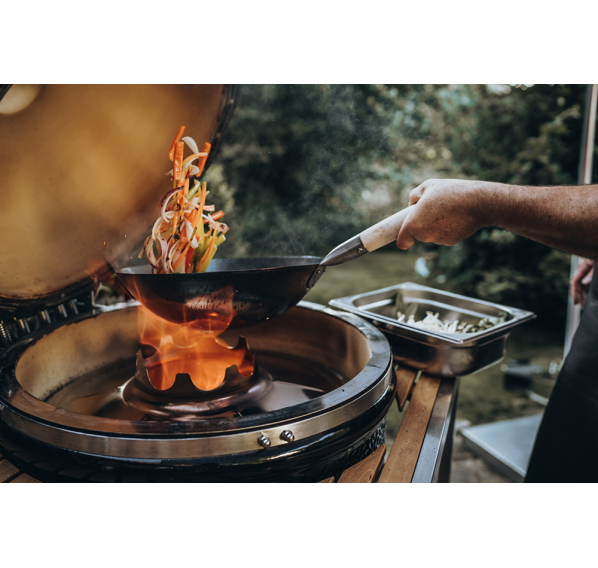 Богатая базовая комплектация позволит Вам извлечь максимум пользы и полноценно использовать гриль Monolith Classic Pro 2.0 уже в первые дни без дополнительных затрат — жарьте, коптите, томите, сушите, выпекайте хлеб как в русской печи или пиццу как в итальянской печи. Благодаря эксклюзивной системе подачи ароматной щепы для копчения, Вы сможете безопасно досыпать её в гриль прямо на угли, не открывая крышку гриля и не сбрасывая температуру во время готовки.