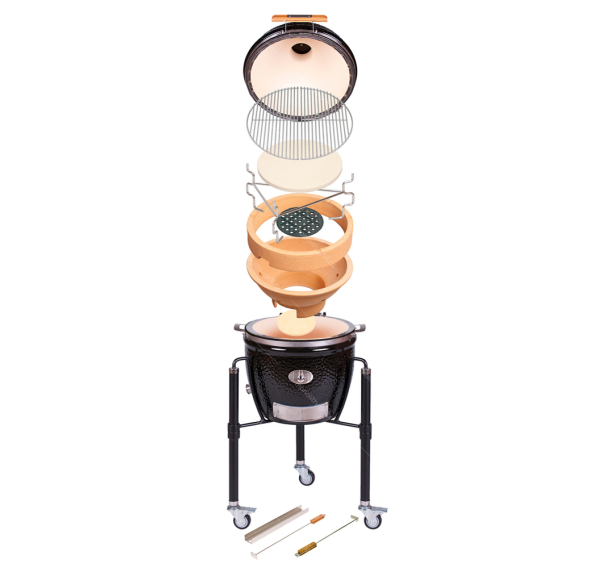 Monolith Junior Pro 2.0 — керамический угольный гриль с диаметром решётки 33 см который является самой компактной моделью в ассортименте Monolith, наряду с моделью ICON. Несмотря на свои небольшие размеры, гриль отлично справляется с любыми задачами, такими как приготовление на гриле, выпечка, копчение, сушка и длительное томление.