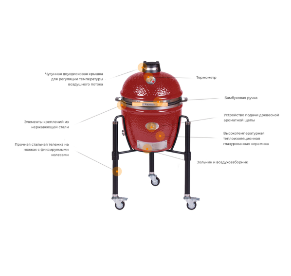 Базовая комплектация позволит Вам извлечь максимум пользы и полноценно использовать гриль Monolith Junior Pro 2.0 уже в первые дни без дополнительных затрат. Благодаря эксклюзивной системе подачи ароматной щепы для копчения, Вы сможете безопасно досыпать её в гриль прямо на угли, не открывая крышку гриля и не сбрасывая температуру во время готовки.
