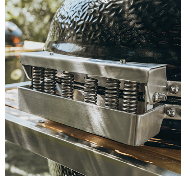 С новой системой решёток Smart Grid System гриль имеет непревзойдённую функциональность. Система SGS позволяет располагать решётку на 4-х уровнях! Отсекатель жара, решётка, и поддоны для жидкостей разделены на 2 полукруга, что позволяет комбинировать стили приготовления и одновременно создавать в гриле 2 зоны приготовления — прямой грилинг (от прямого жара углей) и косвенный грилинг (от температуры под куполом как в печи).
