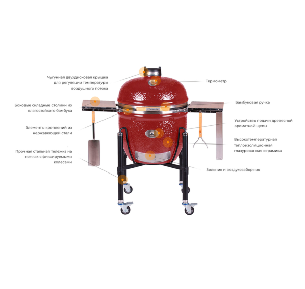 Богатая базовая комплектация позволит Вам извлечь максимум пользы и полноценно использовать гриль Monolith LeChef Pro 2.0 уже в первые дни без дополнительных затрат — жарьте, коптите, томите, сушите, выпекайте хлеб как в русской печи или пиццу как в итальянской печи. Благодаря эксклюзивной системе подачи ароматной щепы для копчения, Вы сможете безопасно досыпать её в гриль прямо на угли, не открывая крышку гриля и не сбрасывая температуру во время готовки.