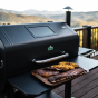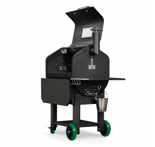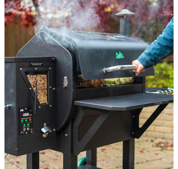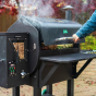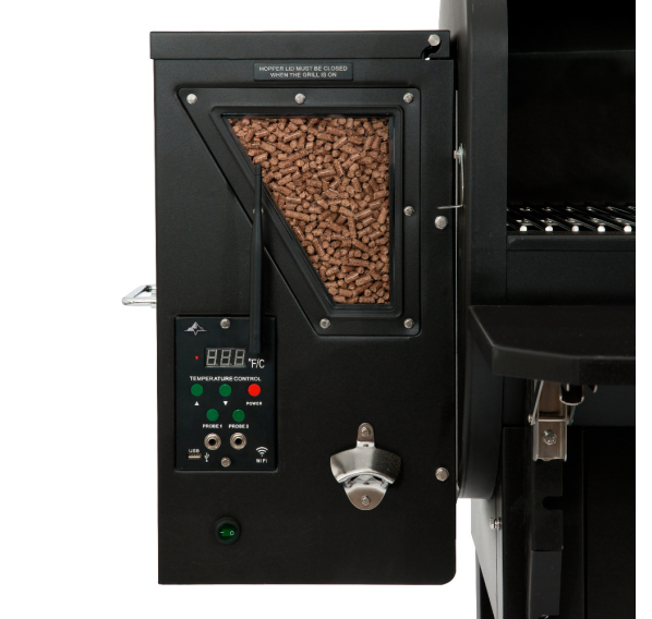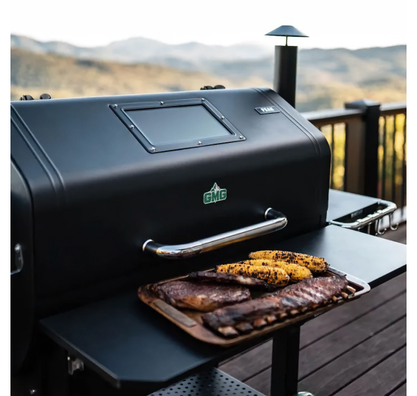 Пеллетный гриль GMG Peak оснащён цифровым контроллером, который позволяет управлять грилем с помощью мобильного приложения для iOS или Android, двумя датчиками температуры мяса и USB-портом. Благодаря решёткам для гриля и окошкам для просмотра гранул Вы сможете следить за процессом приготовления, не допуская выхода дыма/тепла, а также следить за запасами гранул. Заострённая крышка обеспечивает достаточно места для приготовления курицы в вертикальном положении или дюжины рёбрышек. Держите все принадлежности для приготовления на гриле под рукой, повесив их на крючки для посуды на боковом столике.
