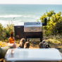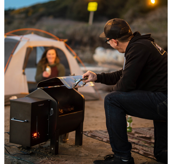 Пеллетный гриль GMG Trek может работать как от розетки, так и от источника 12В. Приложение для смартфона позволяет отдавать команды грилю, даже если Вы находитесь дома на диване. Если Вы захотите устроить грандиозную вечеринку на выезде, то сможете подключить гриль к автомобильному аккумулятору с помощью зажимов.