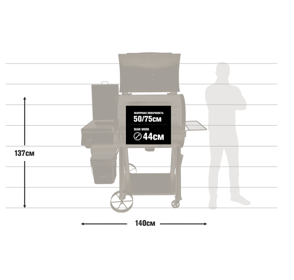 - Дополнительные решётки и полки Flex Grate/Flex Racks Systems ещё больше увеличивают внутреннее пространство гриля (поставляются как дополнительные аксессуары);