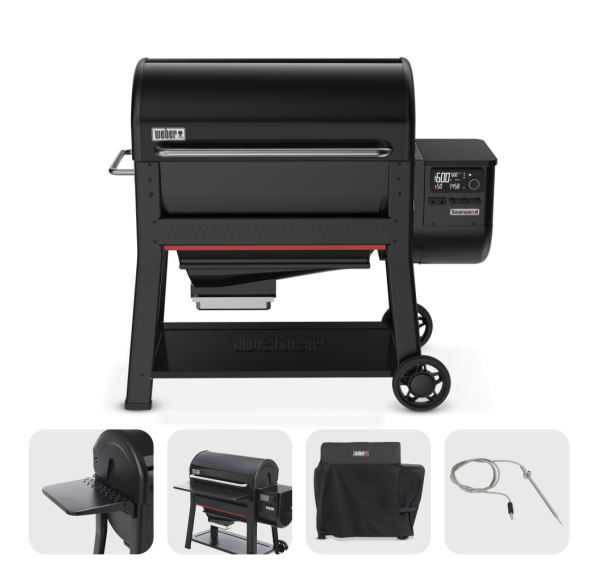 All-In комплект помимо пеллетного гриля Weber включает в себя: боковой столик, передний столик, чехол и щуп.