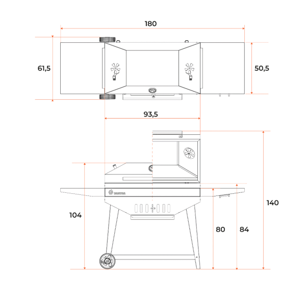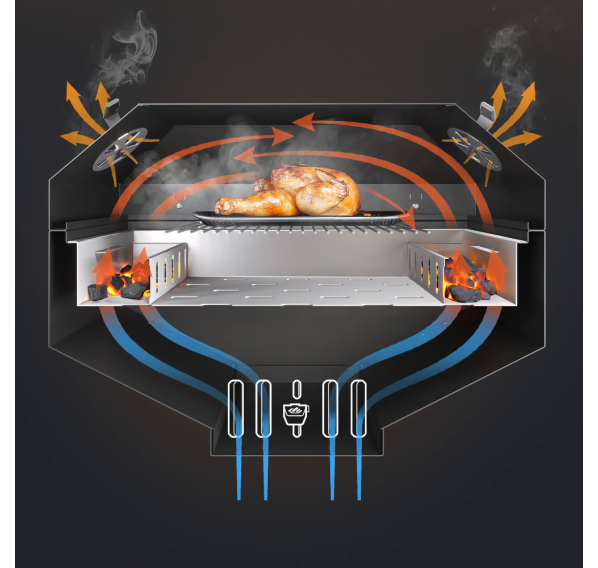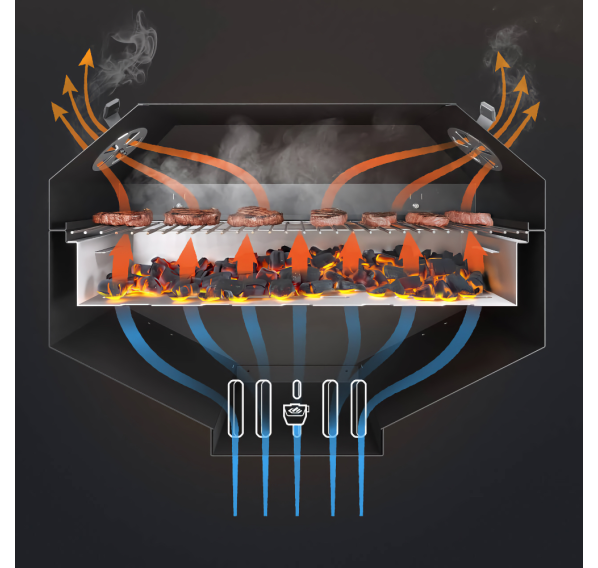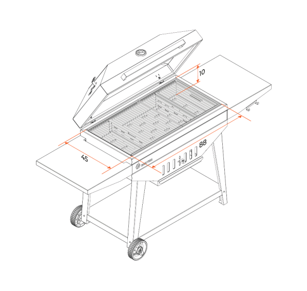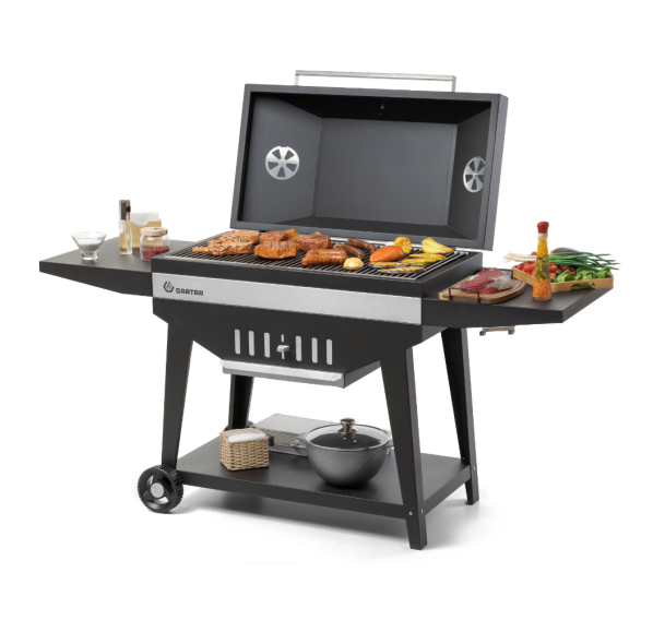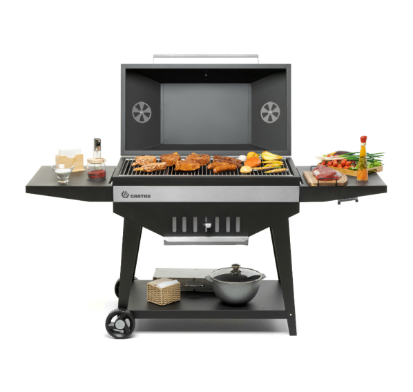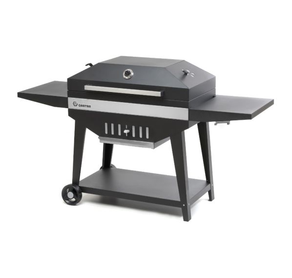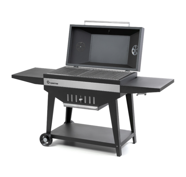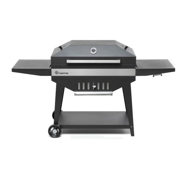 Гриль Gratar Master XL — это большой угольный гриль с крышкой барбекю, оснащённый всеми нужными функциями для комфортной готовки на свежем воздухе. Особенная конструкция корпуса обеспечивает продолжительное удерживание тепла даже при открытой крышке. Гриль оснащён удобной полкой для хранения инструментов, регулируемой заслонкой для контроля воздушного потока, а также зольником для лёгкой очистки. Наличие встроенного термометра позволяет следить за температурой приготовления.