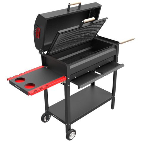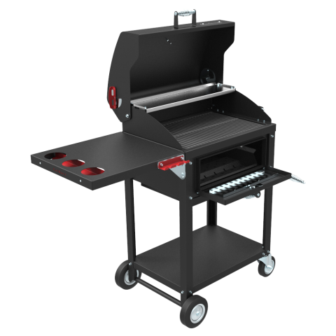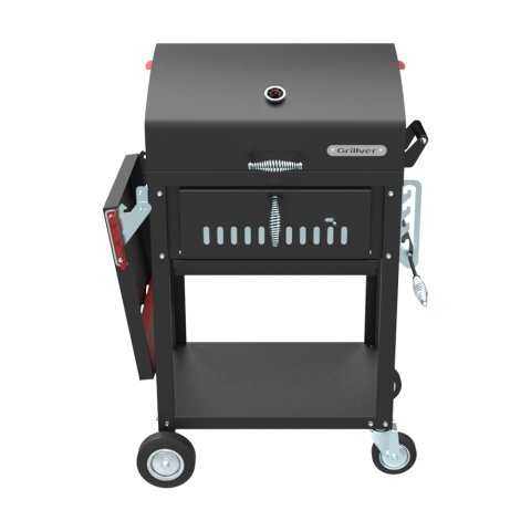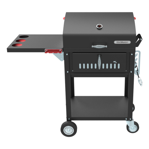 - Премиальные грили с термометром, зольником и вместительной решеткой. Решение для тех, кто любит собирать большие компании и часто жарит мясо. Металлический корпус отлично держит тепло, встроенный термометр помогает контролировать температуру.