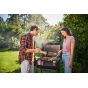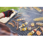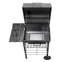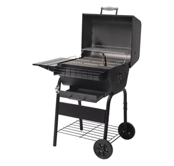 Гриль легко перемещать благодаря двум большим колёсам, а при остановке он устойчив за счёт двух прочных опор. Нижняя полка удобна для хранения угля, топлива и аксессуаров для готовки. А зольник, расположенный спереди, обеспечивает быструю и простую очистку после использования. Регулируемый по высоте угольный поддон позволяет контролировать интенсивность жара, адаптируя температуру под конкретные блюда.