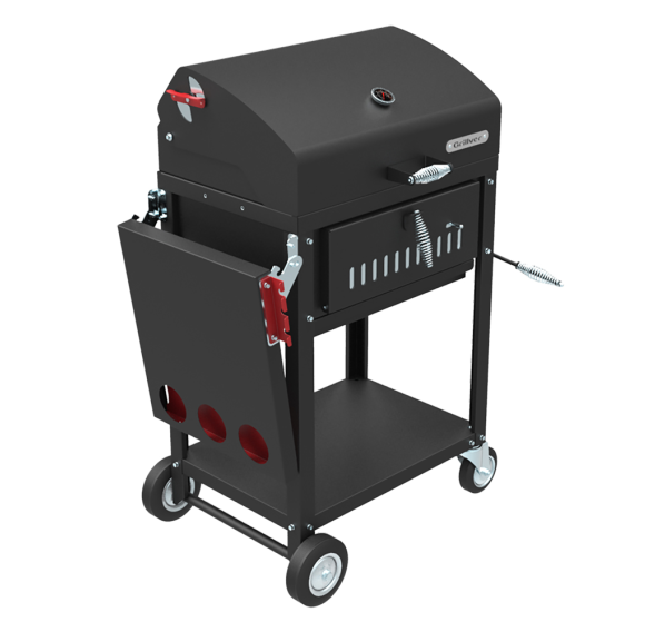 - Топка гриля с регулируемым по глубине угольным лотком;