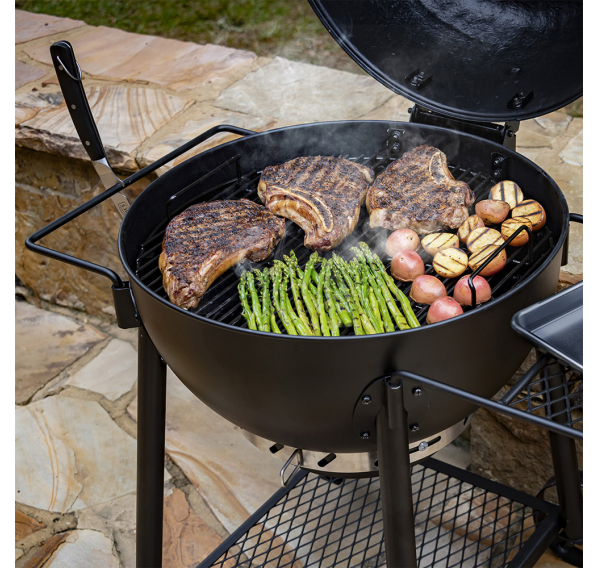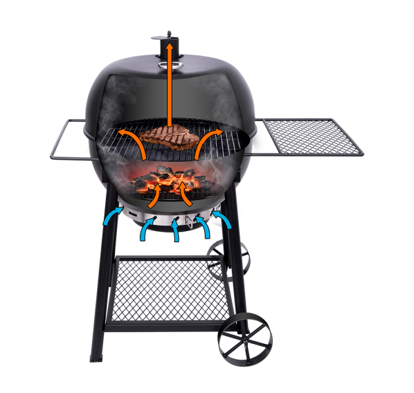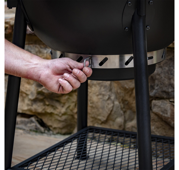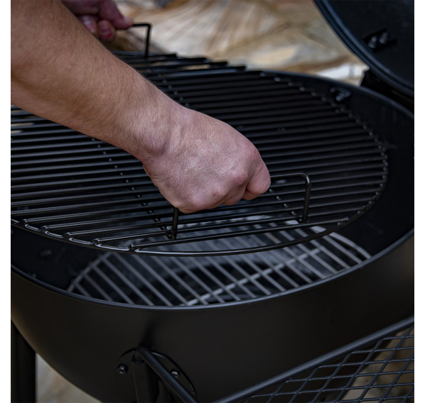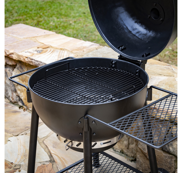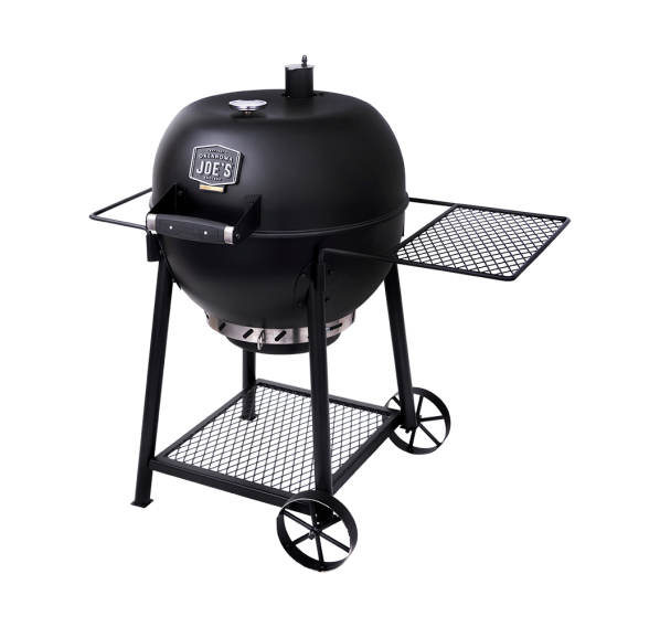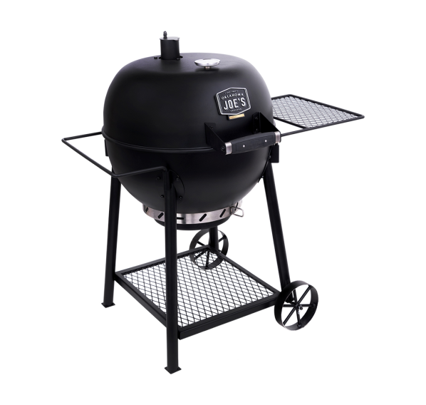 Oklahoma Joe's Blackjack — это классический угольный гриль дополненный инновационными деталями. Котёл и крышка гриля имеют матовое фарфоровое покрытие для защиты от коррозии. Крышка на петлях гарантирует удобство готовки, а съёмный, с фарфоровым покрытием сборник пепла очень просто чистить. Круговая система забора воздуха 360° и регулируемая вытяжная труба обеспечат равномерное горение угля и контроль температуры. Профессиональный, легкочитаемый 3-х дюймовый термометр. Боковое пристолье и держатель для полотенец можно легко менять местами.