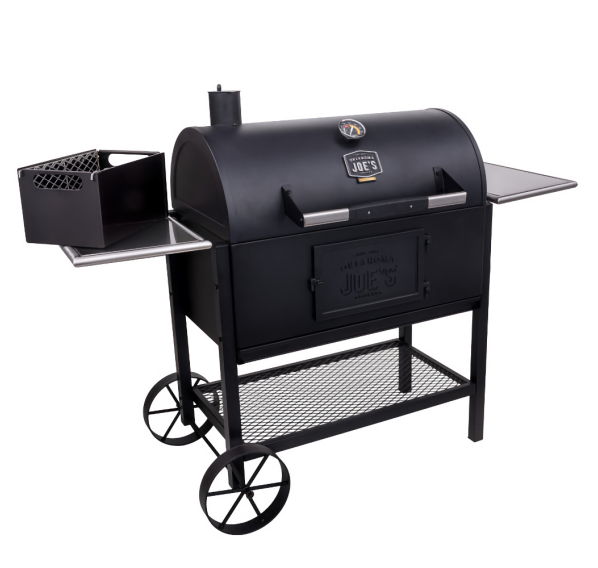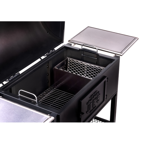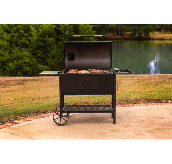 Oklahoma Joe's Judge Limited Edition — cерьёзный лимитированный угольный гриль весом 101 кг. Массивная, основательная конструкция с боковыми пристольями и нижней полкой. Классическая чугунная решётка. На крышке установлен крупный, легкочитаемый термометр и ненагревающаяся ручка. Котёл снабжён нижней заслонкой поддува и широкой дверцей для "управления" углём.