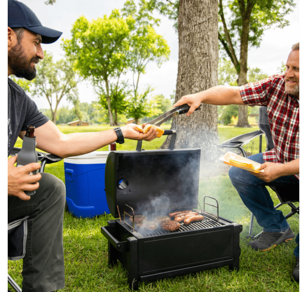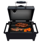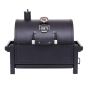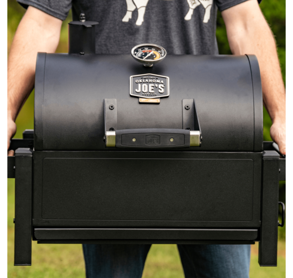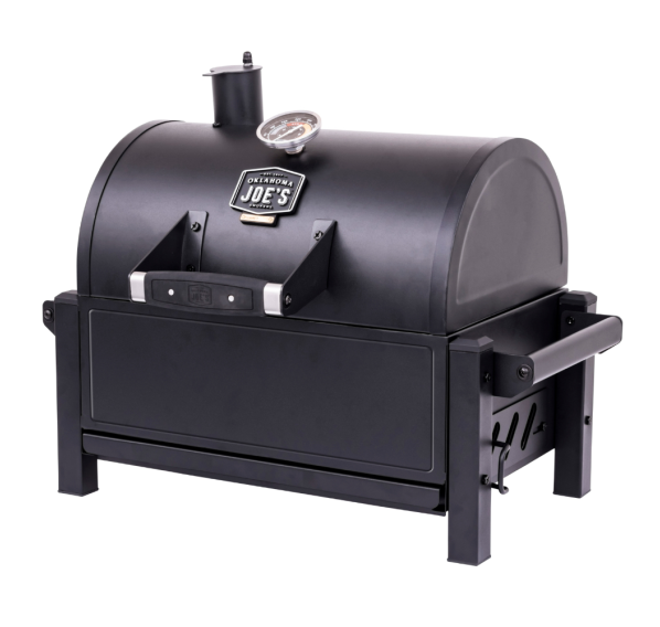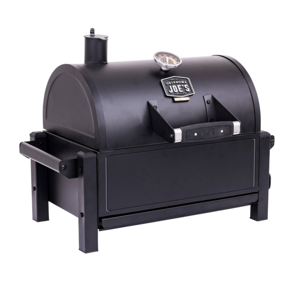 Oklahoma Joe's Rambler Tabletop — настольный угольный гриль обеспечивает мобильность, но никогда не в ущерб качеству! Чугунная решётка-гриль вмещает до 6 бургеров, 6 стейков или 12 сосисок. Профессиональный датчик температуры со светящимися в темноте вставками позволит готовить даже поздним вечером. Ручка крышки имеет удобный резиновый захват и остаётся прохладной во время длительной готовки. Для удобства очистки гриль оснащён съёмным зольником. Регулируемый по высоте поддон для угля, позволяет управлять жаром на решётке. Прочные боковые ручки облегчают транспортировку этого портативного гриля.