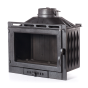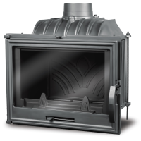 Большое стекло дверцы не покрывается сажей и не запотевает благодаря встроенной системе обдува. Случайное открытие дверцы исключено - она плотно прилегает к корпусу и изолирована специальным негорючим шнуром. Двойная задняя стенка топки продлевает срок службы отопительного прибора.
