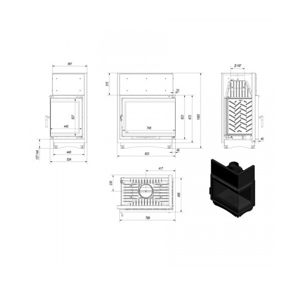 Каминная топка Kratki Amelia/P/BS/DECO
