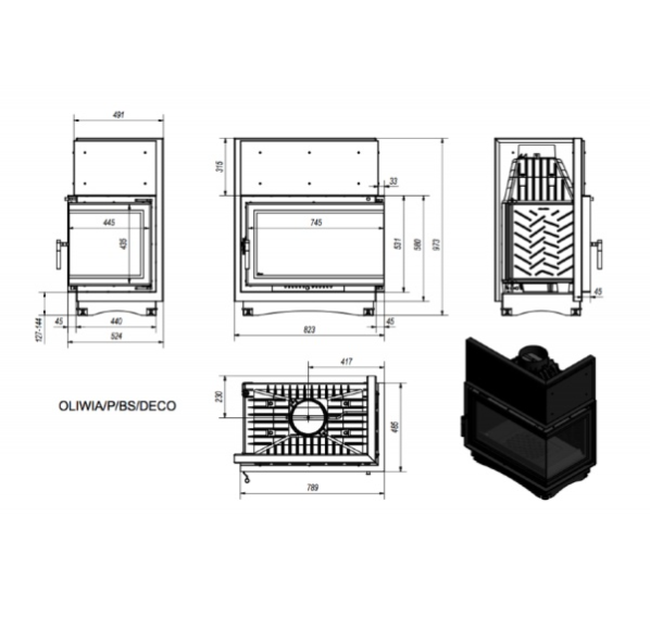 Каминная топка Kratki Oliwia/P/BS/DECO