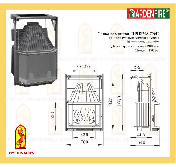 | Способ открытия дверцы топки: |