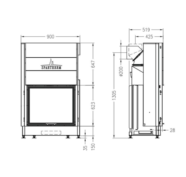 | Ширина топочной дверцы: |