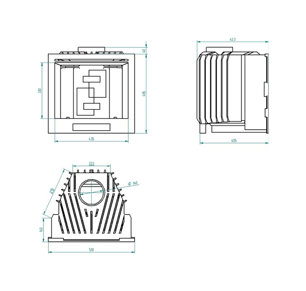 Наружные стенки топки имеют оребрение, увеличивающее площадь теплоотдачи и мощность топки.