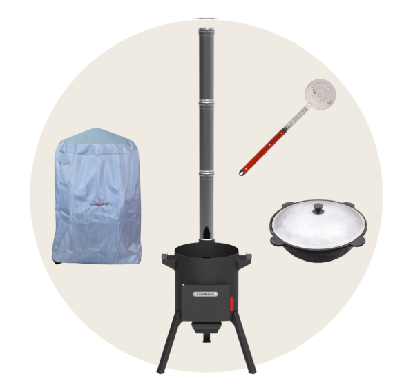 Печь обеспечивает равномерное нагревание казана. Съёмные ножки, разборная труба и заслонка дымохода для максимального удобства — вот преимущества, ради которых стоит купить печь для казана компании Grillver. Уличная печь будет смотреться великолепно, радуя Вас вкусными блюдами.