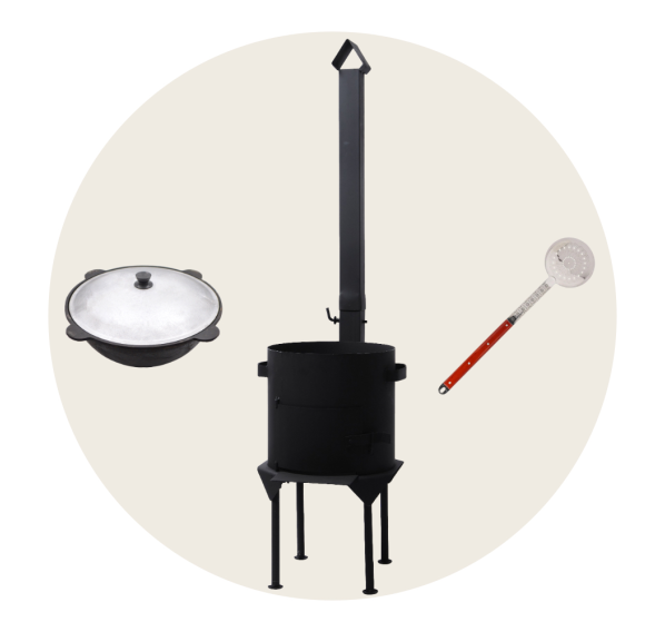 печь под казан, чугунный казан 16 л, шумовка для казана