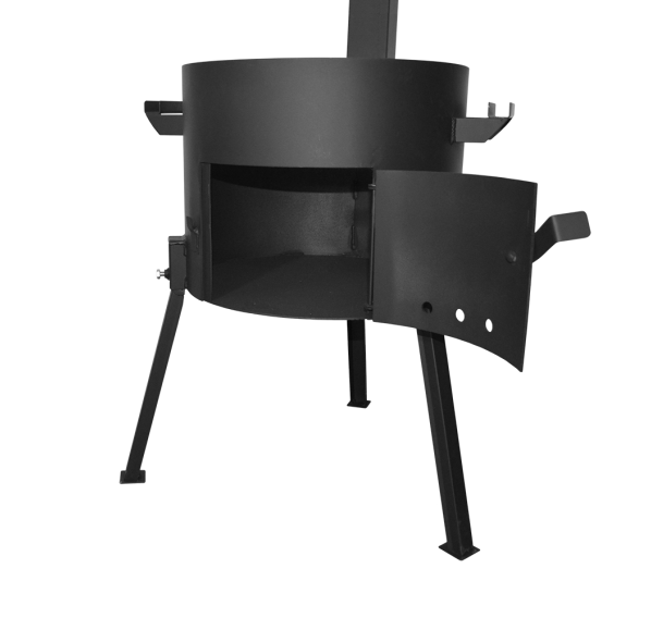 Печь под казан «Искра 350» с дымоходом предназначена для использования казанов на 8 л и 10 л. Изготавливается печь из качественной стали толщиной 2 мм, покрытой специальной жаропрочной эмалью. Толстая качественная сталь, доступная цена, съёмные ножки, съёмная труба и заслонка дымохода — преимущества, ради которых стоит купить печь для казана «Искра 350».