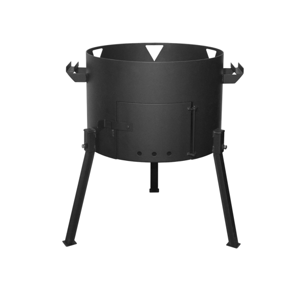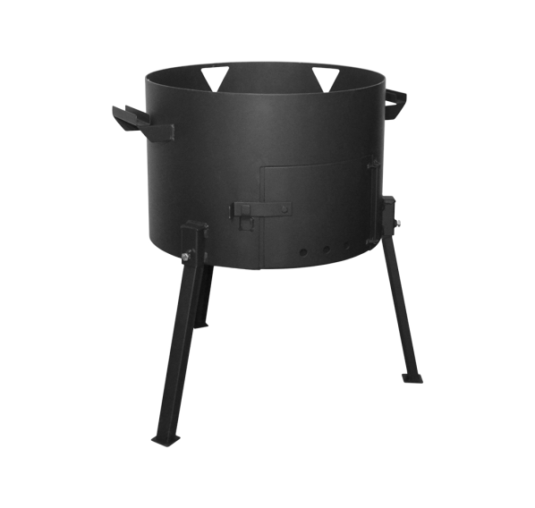 Печь под казан «Искра Плюс 450» предназначена для использования казанов на 16 и 18 л. Изготавливается печь из качественной стали толщиной 3 мм, покрытой специальной жаропрочной эмалью. Толстая качественная сталь, доступная цена, съёмные ножки — преимущества, ради которых стоит купить печь для казана «Искра Плюс 450».