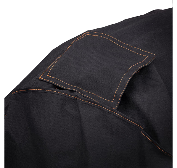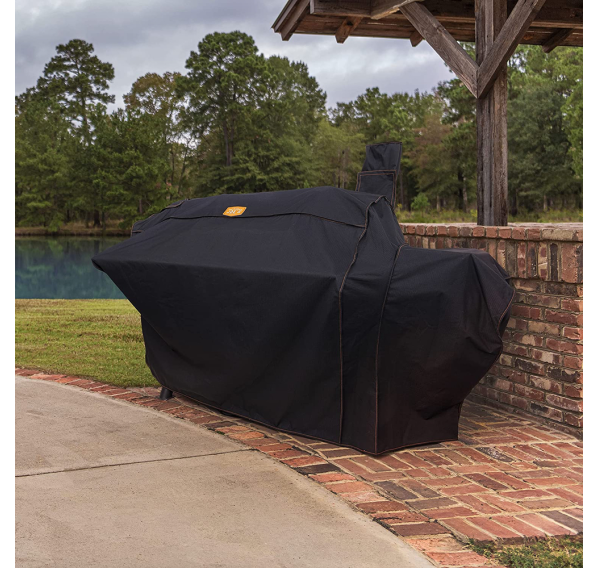 Кастомный всепогодный чехол для коптильни Oklahoma Joe's Longhorn Reverse Flow. Чехол сделан из прочного полиэстера. Не выцветает на солнце, не пропускает атмосферные осадки, ленты-фиксаторы на липучке надёжно держат чехол на коптильне.