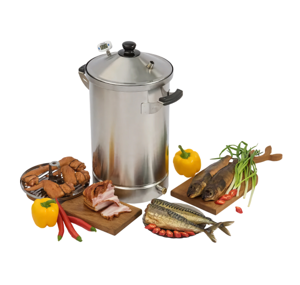 Хотите ароматную сочную курочку или балык? Готовьте в режиме горячего копчения. Устройство герметично, поэтому коптить можно прямо на кухне у себя дома. Есть желание попробовать что-то с более сбалансированным вкусом и ароматом? Используйте коптильню как коптильный шкаф, подключайте к ней дымогенератор (приобретается отдельно) и коптите холодным методом. Для подключения шланга в корпусе предусмотрено специальное отверстие.