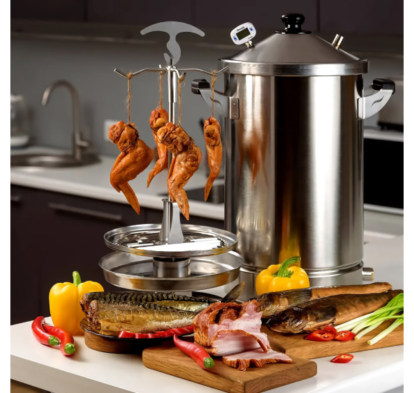 Коптильня Hanhi 4 — универсальная коптильня для горячего и холодного копчения в домашних условиях. Герметична, удобна в использовании, поможет приготовить сочные, ароматные и безопасные копчёности. Имеет уникальную систему фильтрации дыма, имеет удобные ручки для переноски, совместима с домашними индукционными плитами.