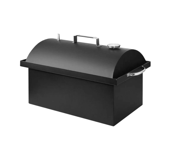 Коптильня покрыта жаропрочной эмалью, что продлевает срок службы и придаёт презентабельный вид. Две съёмные решётки для копчения и поддон для сбора жира с ручками для удобства закладки и извлечения продуктов. Решётки и поддон выполнены из нержавеющей стали.
