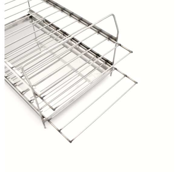 Коптильня покрыта жаропрочной эмалью, что продлевает срок службы и придаёт презентабельный вид. Две съёмные решётки для копчения и поддон для сбора жира с ручками для удобства закладки и извлечения продуктов. Решётки и поддон выполнены из нержавеющей стали.