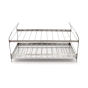 Коптильня покрыта жаропрочной эмалью, что продлевает срок службы и придаёт презентабельный вид. Две съёмные решётки для копчения и поддон для сбора жира с ручками для удобства закладки и извлечения продуктов. Решётки и поддон выполнены из нержавеющей стали.
