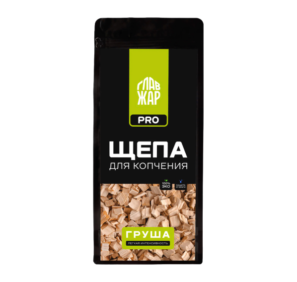 Натуральная щепа груши для использования в коптильнях, мангалах и любых типах грилей. Щепа груши "ГлавЖар" имеет лёгкую интенсивность. Не забудьте перед применением замочить щепу в холодной воде на 15-20 минут. Прочная, водонепроницаемая упаковка с застёжкой зип-лок не даст щепе рассыпаться и защитит от влаги.