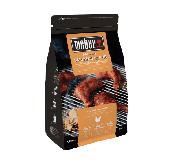 Щепа деревьев разных пород придаст блюдам из курицы особенные вкус и аромат с лёгким оттенком сладости. Перед использованием щепу необходимо вымочить в воде 20 минут. Влажную щепу можно положить на угли, а в газовых грилях использовать контейнер для копчения. Подходит для использования со всеми грилями компании Weber.