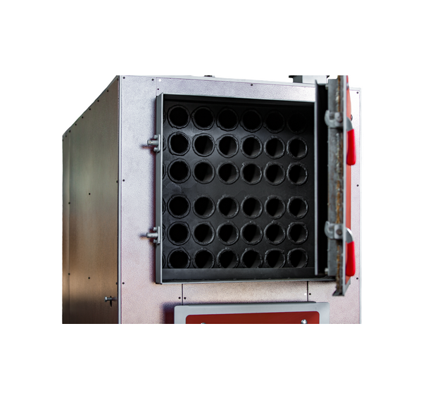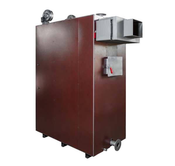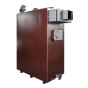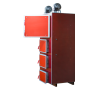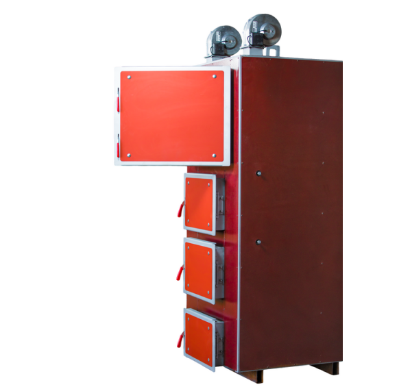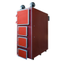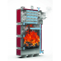 Предназначен для отопления загородных домов, складских и промышленных зданий, офисных и жилых помещений, площадью от 600-2500 кв.м., оборудованных системами водяного отопления с принудительной циркуляцией. Преимущества: Высокий КПД (по результатам проведенных испытаний данный котел позволяет экономить до 30% твердого топлива); Возможность функционирования в автоматическом режиме: данный котел оборудован вентилятором наддува и микропроцессорным регулятором, которые позволяют контролировать мощность котла; Уникальность конструкции: она позволяет использовать любой вид твердого топлива (уголь, древесину). Также в котле используется регулируемая система распределения подачи воздуха в зоны активного горения и дожига, что позволяет максимально эффективно управлять процессом сгорания топлива в камере при различной мощности котла; Топка котла представляет собой засыпную камеру, имеющую развитую поверхность теплообмена со всех стенок, потолка, части дна, оборудованную водотрубным теплообменником, что позволяет сделать процесс горения максимально эффективным. Длительное время горения топлива: при выходе на рабочую мощность котла, длительность его бесперебойной работы составляет от 3 до 16 часов. Соотношение приемлемой цены с высокими показателями качества: по сравнению с импортными аналогами данный котел значительно ниже по цене, а благодаря использованию современных производственных технологий и автоматизации процессов, качество выпускаемых котлов постоянно улучшается. Постоянное складское наличие, высокая скорость отгрузки покупателям и короткий срок изготовления. Описание: Промышленный отопительный твердотопливный котел оборудован жаротрубным теплообменником, закрытый снаружи водяной рубашкой. Теплообменник представляет собой многоступенчатую конструкцию дымовых каналов. Горячие газы после зоны дожига проходят через стальной жаротрубный теплообменник, где, отдав тепло, охлаждаются. Охлажденные газы выходят из котла через дымоход, соединенный с дымовым патрубком. Расположение дверей теплообменника, засыпной, камеры сгорания и зольника позволяет получить быстрый доступ к топке для очистки и розжига. Широкая засыпная дверца облегчает загрузку топлива. Воздух, необходимый для правильного процесса сжигания, подается вентилятором благодаря системе наддувных втулок, расположенных непосредственно в области загруженного топлива. Микропроцессорный регулятор постоянно измеряет температуру воды в котле и соответственно устанавливает силу наддува вентилятора, регулируя количество воздуха, необходимого для процесса сжигания.
