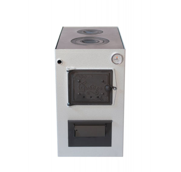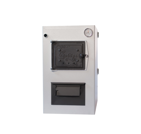 - эстетичный вид котлу придает покрытие корпуса из полимерной термостойкой эмали, а также брендированная надпись на дверце «Сибирь»;