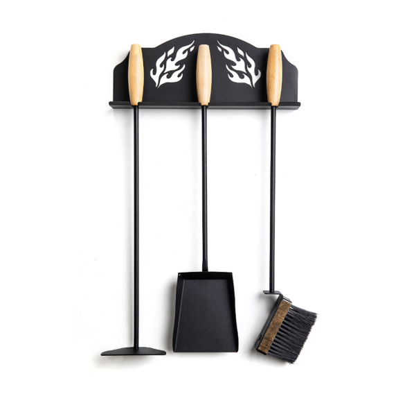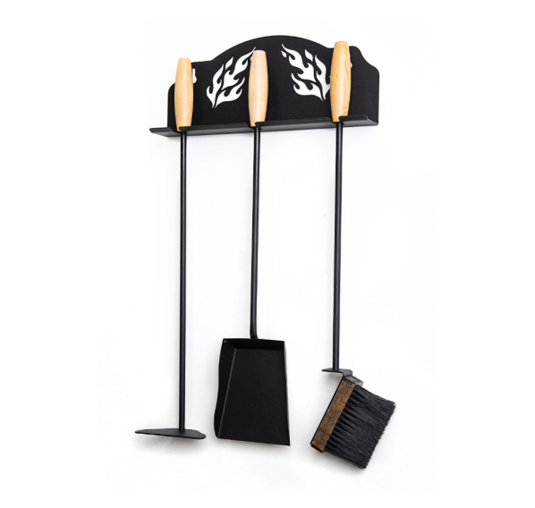 Навесное исполнение. Состоит из трёх предметов: щётки для очистки очага, совка и кочерги. Ручка каждого аксессуара выполнена из ценных пород дерева.