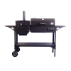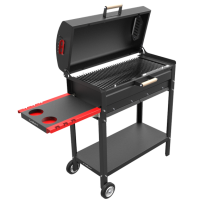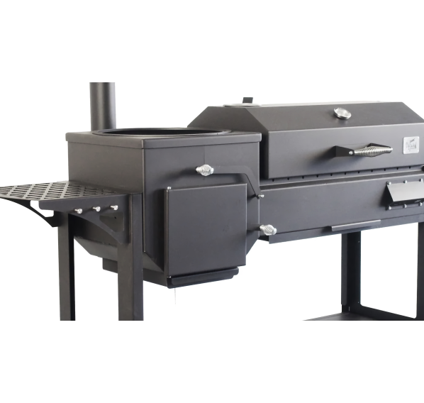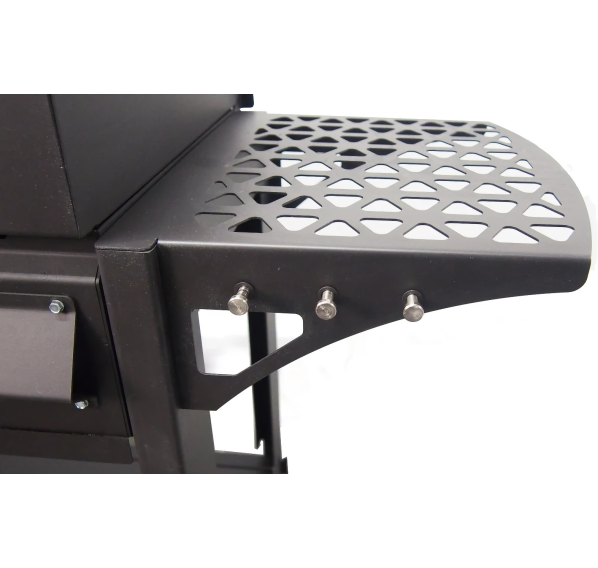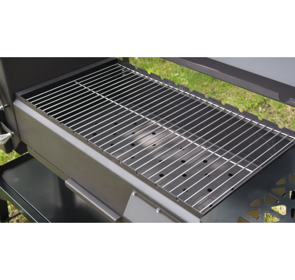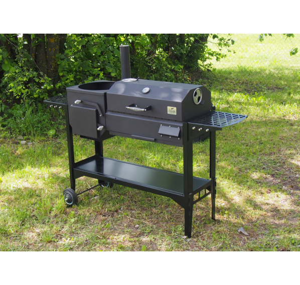 Металлическая крышка защитит от порыва ветра и сохранит тепло от угля для длительных рецептов. Все процессы Вы можете контролировать с помощью встроенного термометра, регулируя температуру тягой. Новая верхняя заслонка на трубе дымохода даёт возможность полностью перекрыть тягу в топке под казаном, и запустить её через вторую камеру с решёткой. Это позволяет одновременно готовить на казане и запекать, томить и даже коптить в мангальной части устройства. Снизу под рабочей зоной теперь открытая полка для хранения кухонной утвари, что уменьшает вес и облегчает транспортировку.