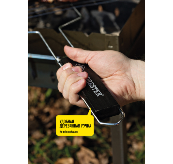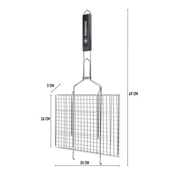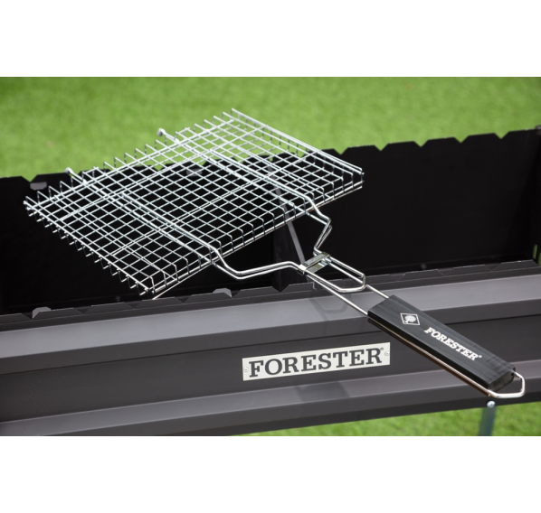 Решётка-гриль Forester поможет Вам быстро приготовить мясо, рыбу, птицу и овощи-гриль на открытом огне. Она имеет оптимальные размеры для приготовления блюд для небольшой компании. С помощью специальных изогнутых усиков Вы легко и надёжно зафиксируете решётку на мангале. Удобная деревянная ручка убережёт Ваши руки от ожогов. Решётка-гриль выполнена из высококачественной стали с нанесением двойного антикоррозийного покрытия.