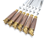 Идеально заостренный конец шампура позволит Вам без труда нанизать на него продукты, а закругленный противоположный конец повышает безопасность его использования и предотвращает травмирование рук.