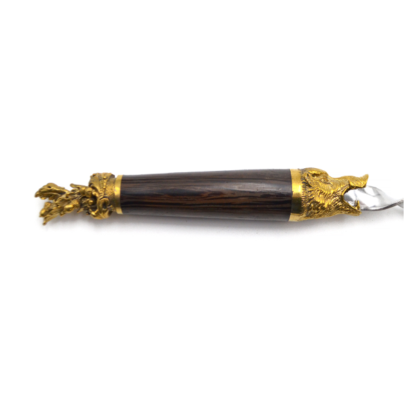 Ручки выполнены из дерева венге и художественного латунного литья в виде голов диких животных.
