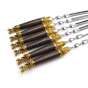 Идеально заостренный конец шампура позволит Вам без труда нанизать на него продукты, а закругленный противоположный конец повышает безопасность его использования и предотвращает травмирование рук.