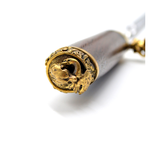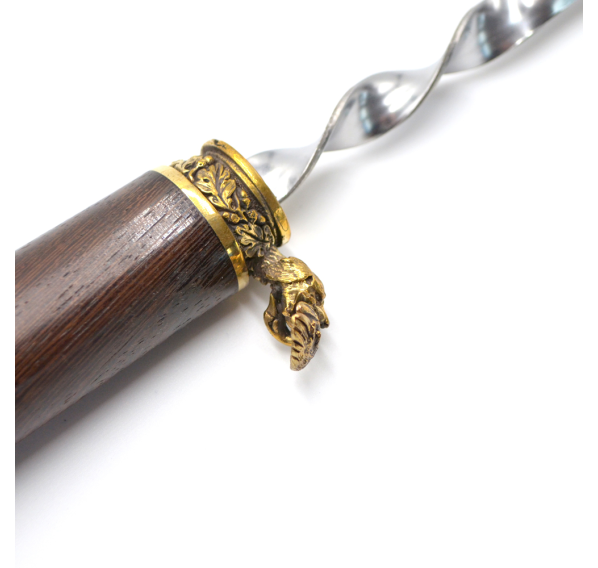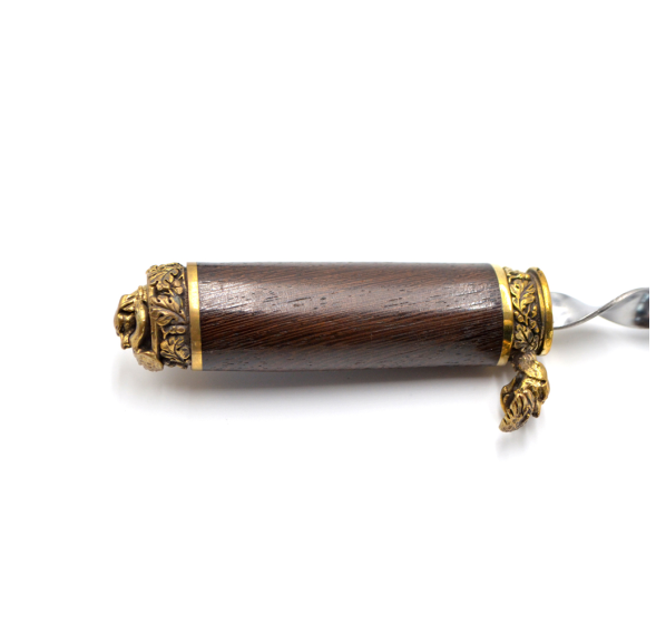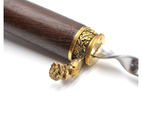 Ручки выполнены из дерева венге и художественного латунного литья в виде имитации охоты на утку.