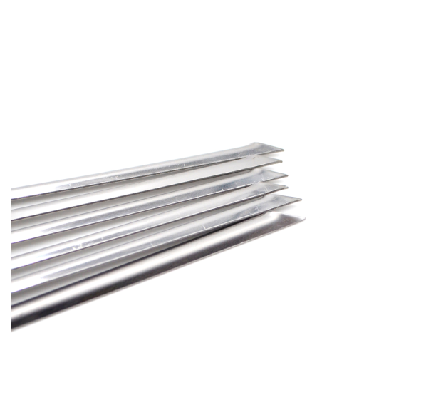 Идеально заостренный конец шампура позволит Вам без труда нанизать на него продукты, а закругленный противоположный конец повышает безопасность его использования и предотвращает травмирование рук.