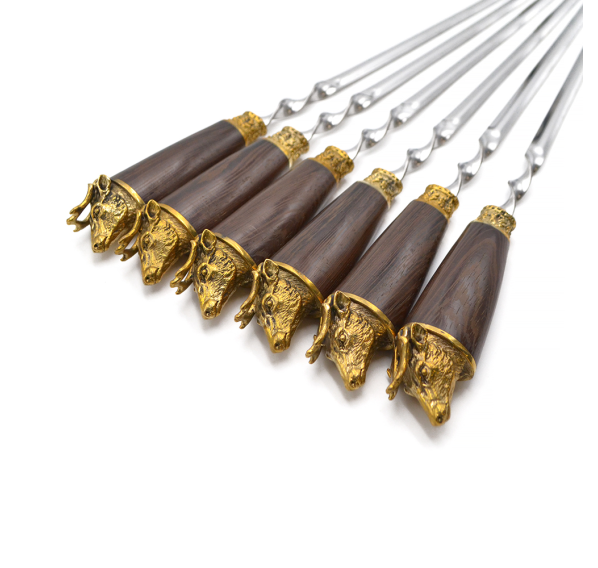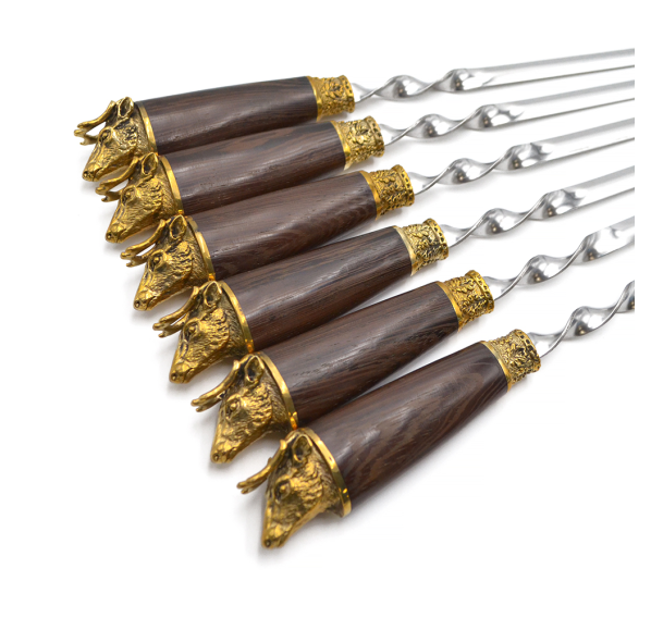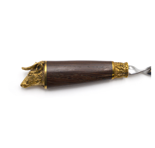 Ручки выполнены из дерева венге и художественного латунного литья в виде головы оленя.