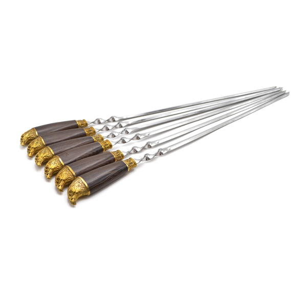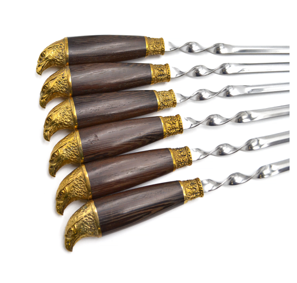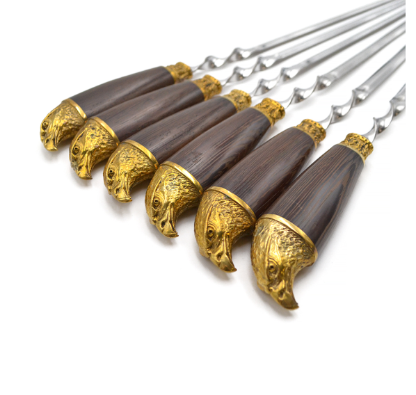 Ручки выполнены из дерева венге и художественного латунного литья в виде головы орла.