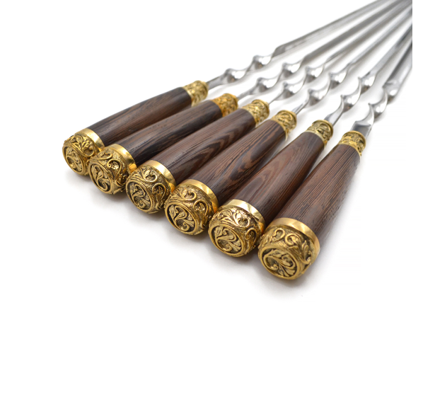 Ручки выполнены из дерева венге и художественного латунного литья.