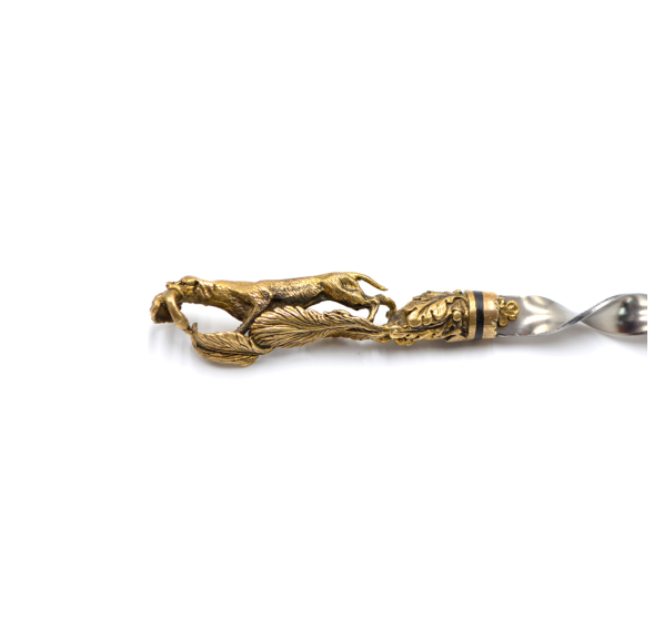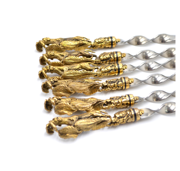Ручки выполнены из художественного латунного литья в виде имитации псовой охоты.